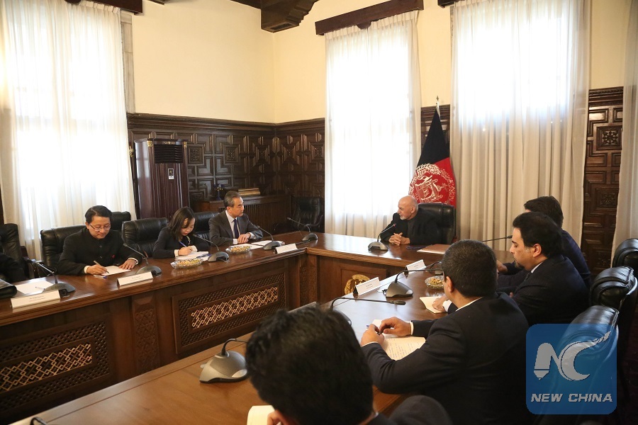 KABUL, Dec. 15 (Xinhua) -- Afghan President Mohammad Ashraf Ghani met here Saturday with visiting Chinese State Councilor and Foreign Minister Wang Yi, with both sides expressing willingness to deepen cooperation and combat terrorism.