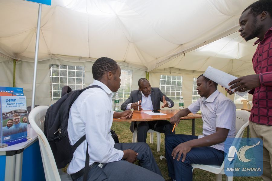 College graduates visit the stand of TECNO at jobs recruitment fair for Kenyan students in Nairobi, Kenya, on Dec. 18, 2018. (Xinhua/Zhang Yu)