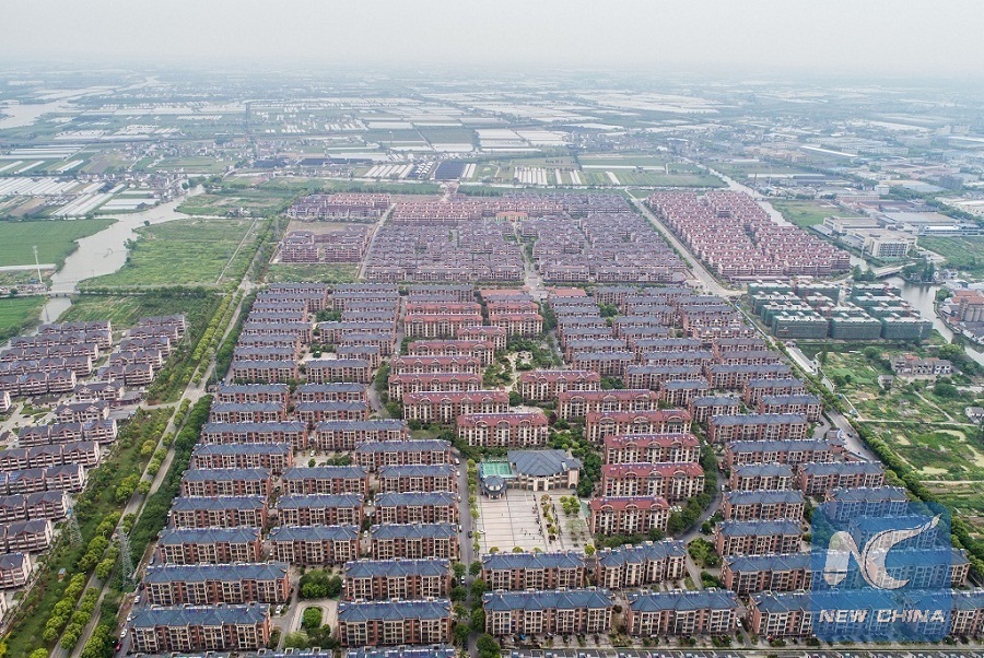 Aerial photo taken by a drone on Apr. 21, 2018 shows Taoyuanxincun Community in Yaozhuang Town, Jiashan County, east China's Zhejiang Province. (Xinhua/Xu Yu)