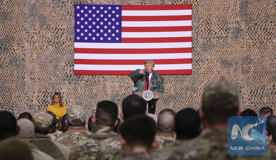 MOSCOW, Dec. 27 (Xinhua) -- U.S. President Donald Trump is trying to "sit on two chairs at the same time" by keeping the military base in Iraq as a bridgehead for actions in Syria after withdrawing troops from Syria, a Russian lawmaker said Thursday.