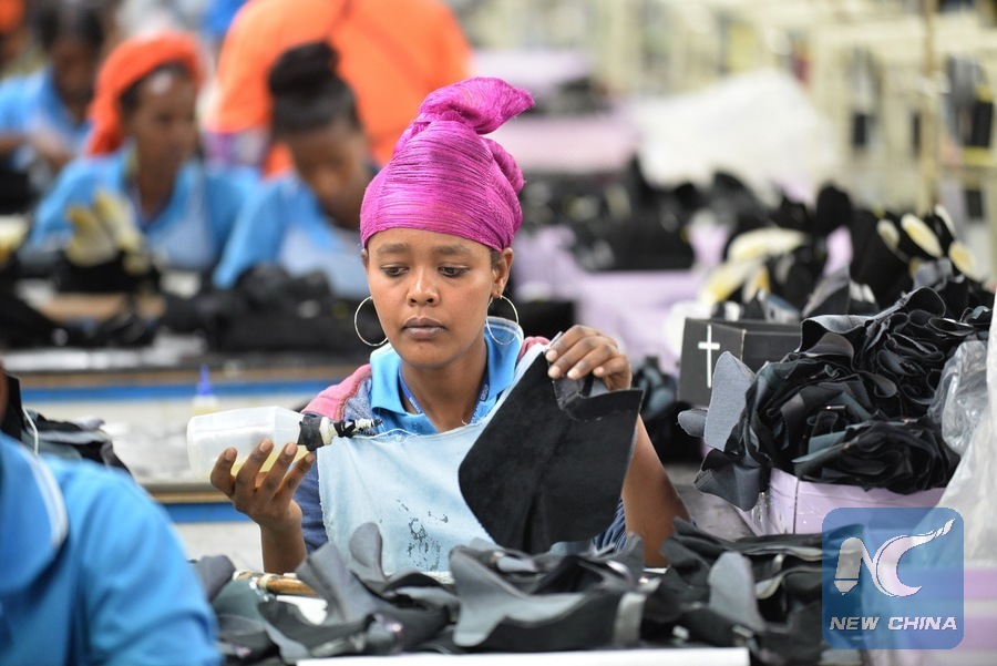 A worker goes about her work at Bole Lemi Industrial Park in Addis Ababa, capital of Ethiopia, April 6, 2017. (Xinhua/Michael Tewelde)