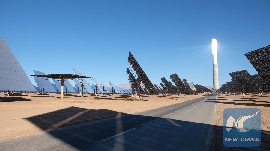 Photo taken on Jan. 10, 2018 shows part of Morocco's NOOR III Concentrated Solar Power (CSP) project in Ouarzazate, Morocco. (Xinhua/Chen Binjie)