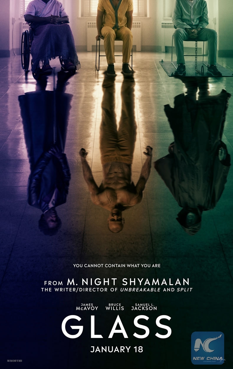LOS ANGELES, Jan. 20 (Xinhua) -- Universal's presentation of superhero thriller film "Glass" took the top spot of North American box office in its opening weekend with an estimated 40.58 million U.S. dollars through Sunday.