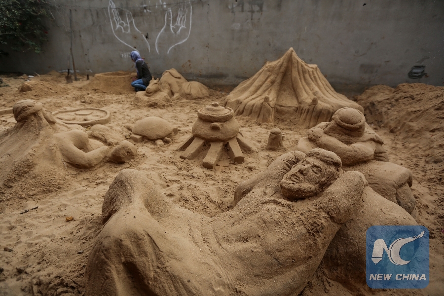 GAZA, Jan. 28 (Xinhua) -- Rana Ramlawi, a 23-year-old Palestinian young woman from the Gaza Strip, resorts to sand art to highlight the Palestinian cause and the Israeli-Palestinian conflict.