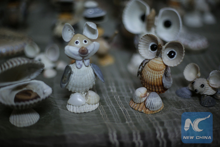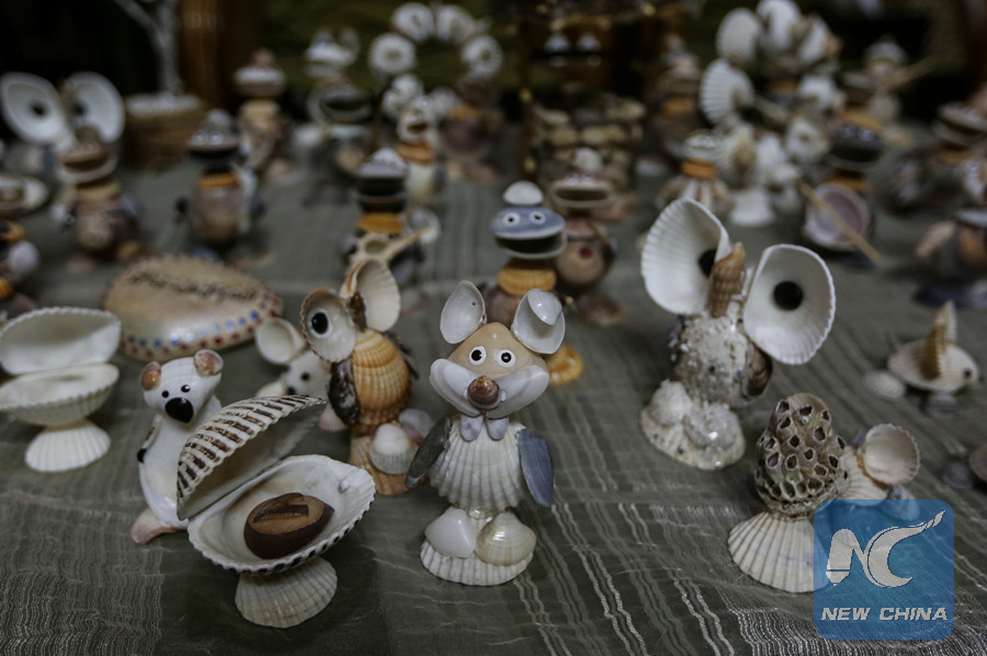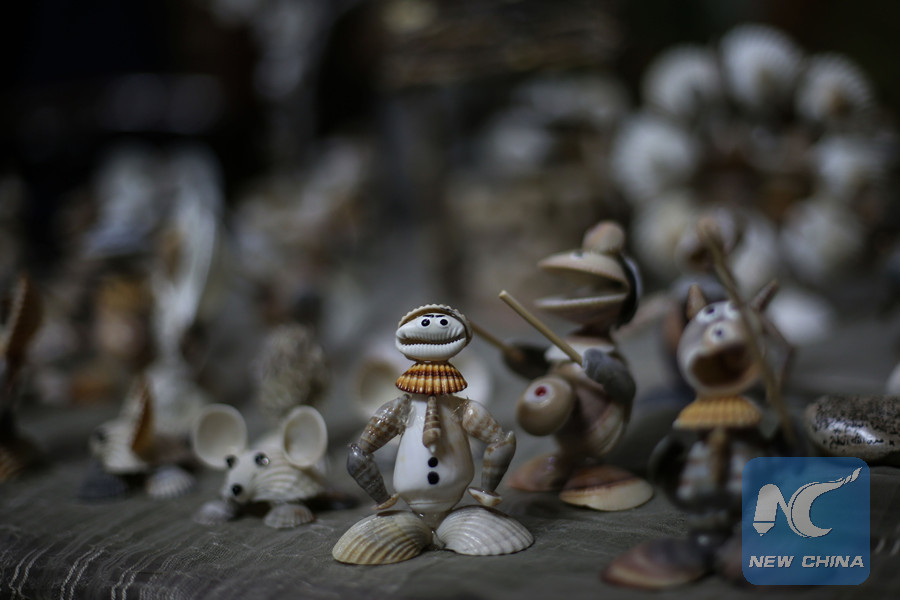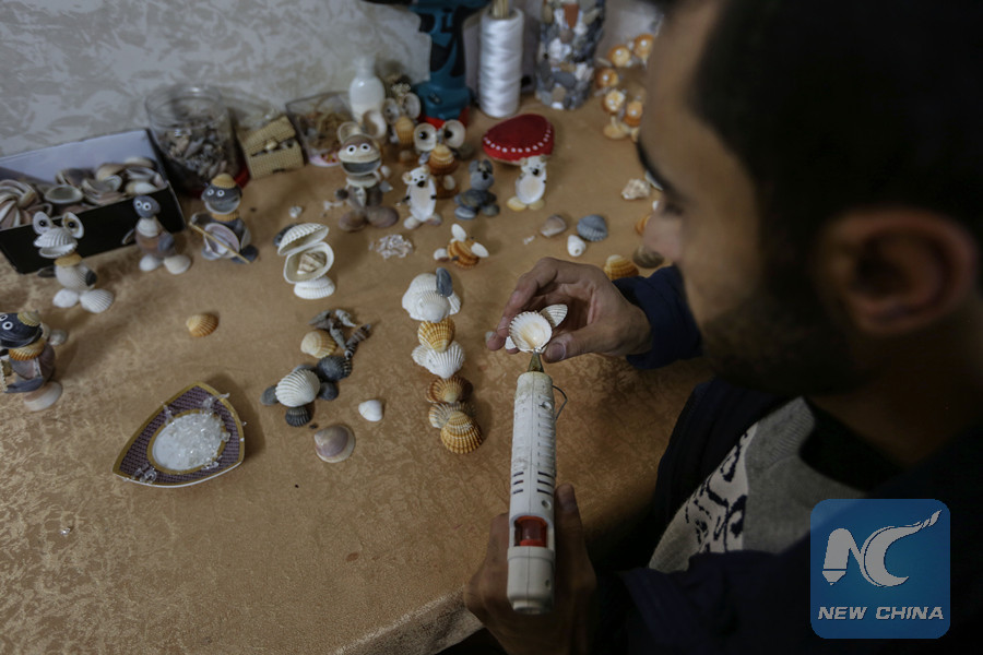 "Collecting shells and snails attracted me to transform them into artistic forms to develop my talent and passion for this art," al-Madhoun, a father of two children, told Xinhua as he used a hot melt glue gun to stick pieces together.