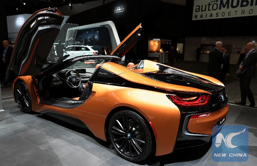 File Photo: The BMW i8 is seen during the 2018 North American International Auto Show (NAIAS) in Detroit, the United States, on Jan. 15, 2018. (Xinhua/Wang Ping)