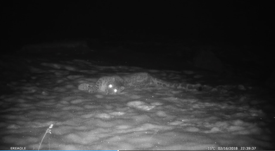 Fresh footprints, digging traces and snow leopard feces were found by the staff. Twenty-one cameras have captured snow leopards 94 times, collecting 417 pictures and videos.