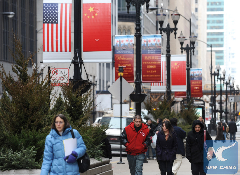 FILE PHOTO: Residents walk in the street in Chicago, U.S., on Jan. 19, 2011. (Xinhua/Shen Hong)