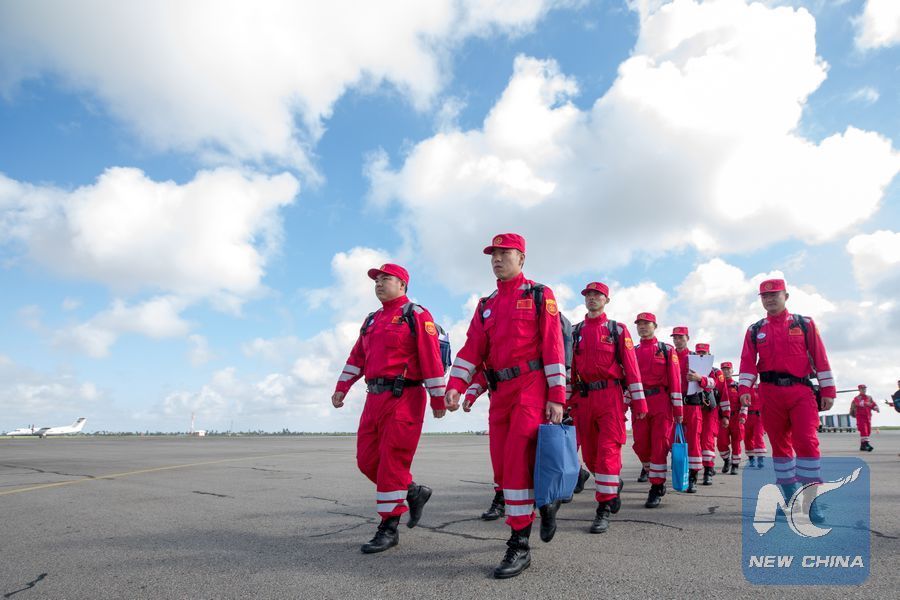 A Chinese rescue team arrived at Beira, Mozambique on March 25, 2019. The 65-member team was dispatched, at the request of the Mozambique government, by the Chinese Ministry of Emergency Management. (Xinhua/Zhang Yu)