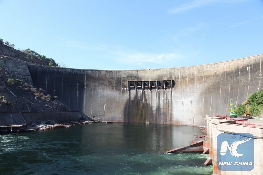 File photo shows the dam of Kariba hydropower station in Zambia. The Zambian Kariba North Bank Power expansion project was constructed by China's Sinohydro Corporation, and included two 180 megawatt generators. (Xinhua/Peng Lijun)