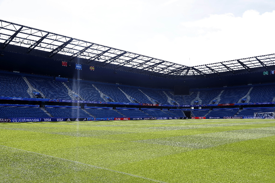 The picture taken on June 16, 2019 shows the internal view of the Stade Oceane one day ahead of the group B match between China and Spain at the 2019 FIFA Women's World Cup in Le Havre, France. (Xinhua/Ding Xu)