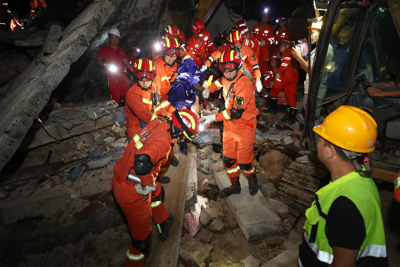 Rescuers search for trapped people in Shuanghe Town in Changning County of Yibin City, southwest China's Sichuan Province, June 18, 2019. (Xinhua)