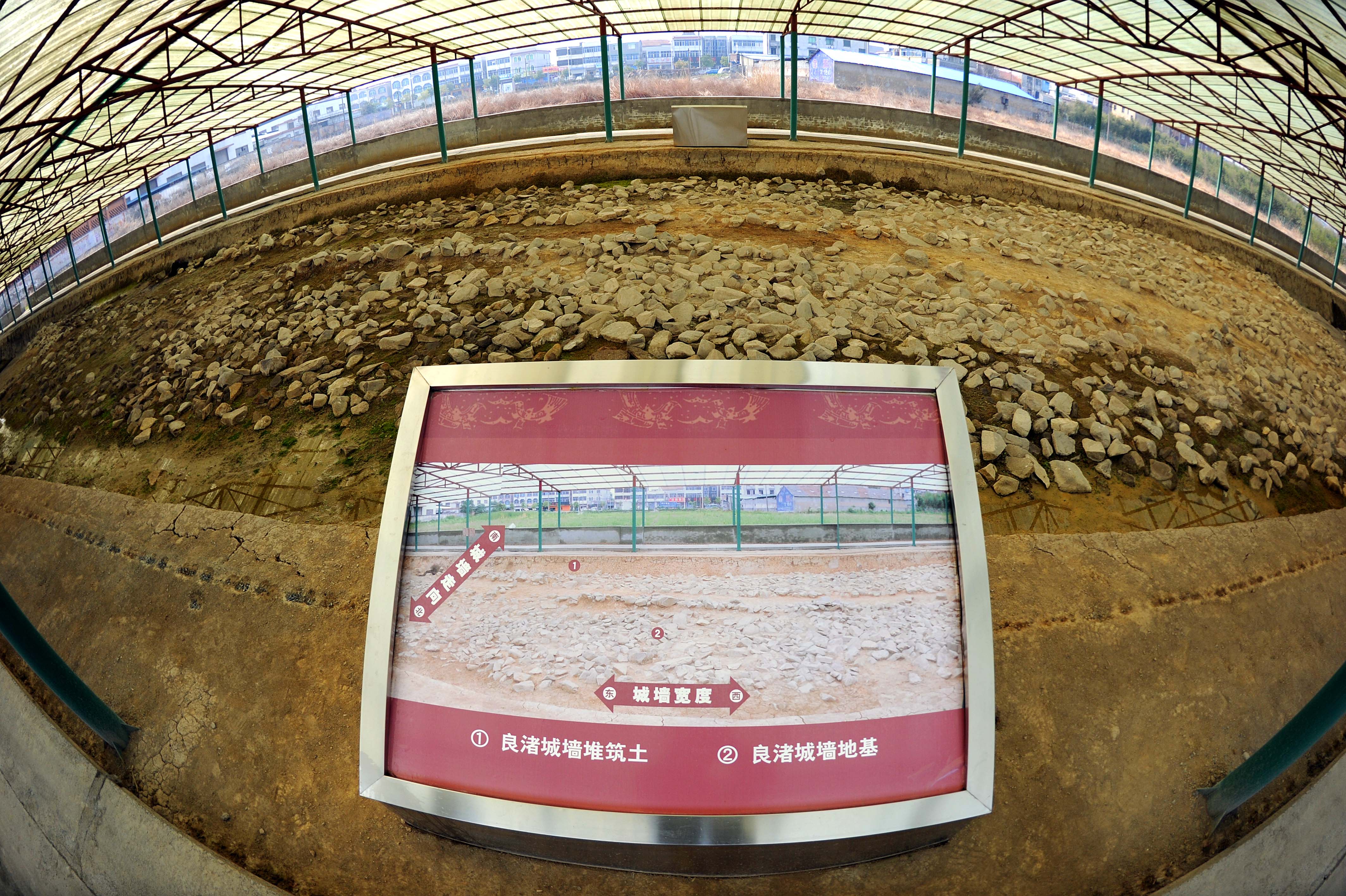 The remains of city walls on display at the Liangzhu relic site in Hangzhou. (Xinhua/Xu Yu)