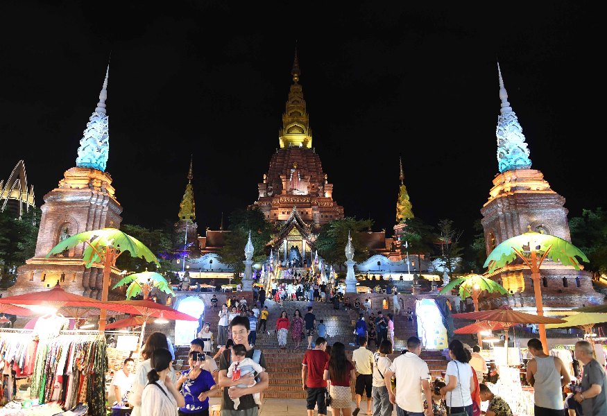 Citizens visit a night fair by the Lancang River in Jinghong City, Dai Autonomous Prefecture of Xishuangbanna, southwest China's Yunnan Province, May 31, 2019. (Xinhua/Yang Zongyou)