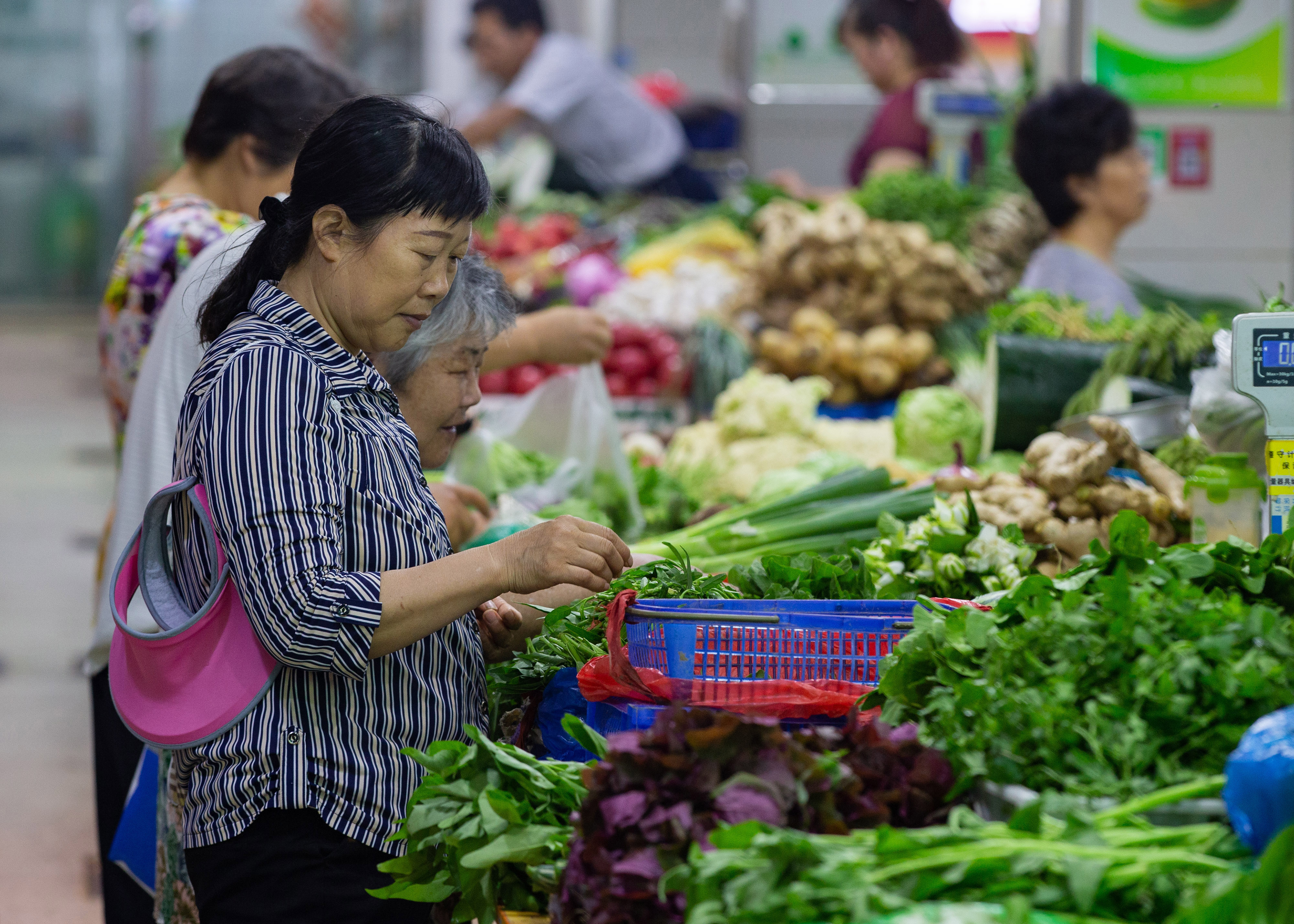 A customer selects vegetables at a supermarket in Wuxi City, east China's Jiangsu Province, June 12, 2019. (Xinhua)