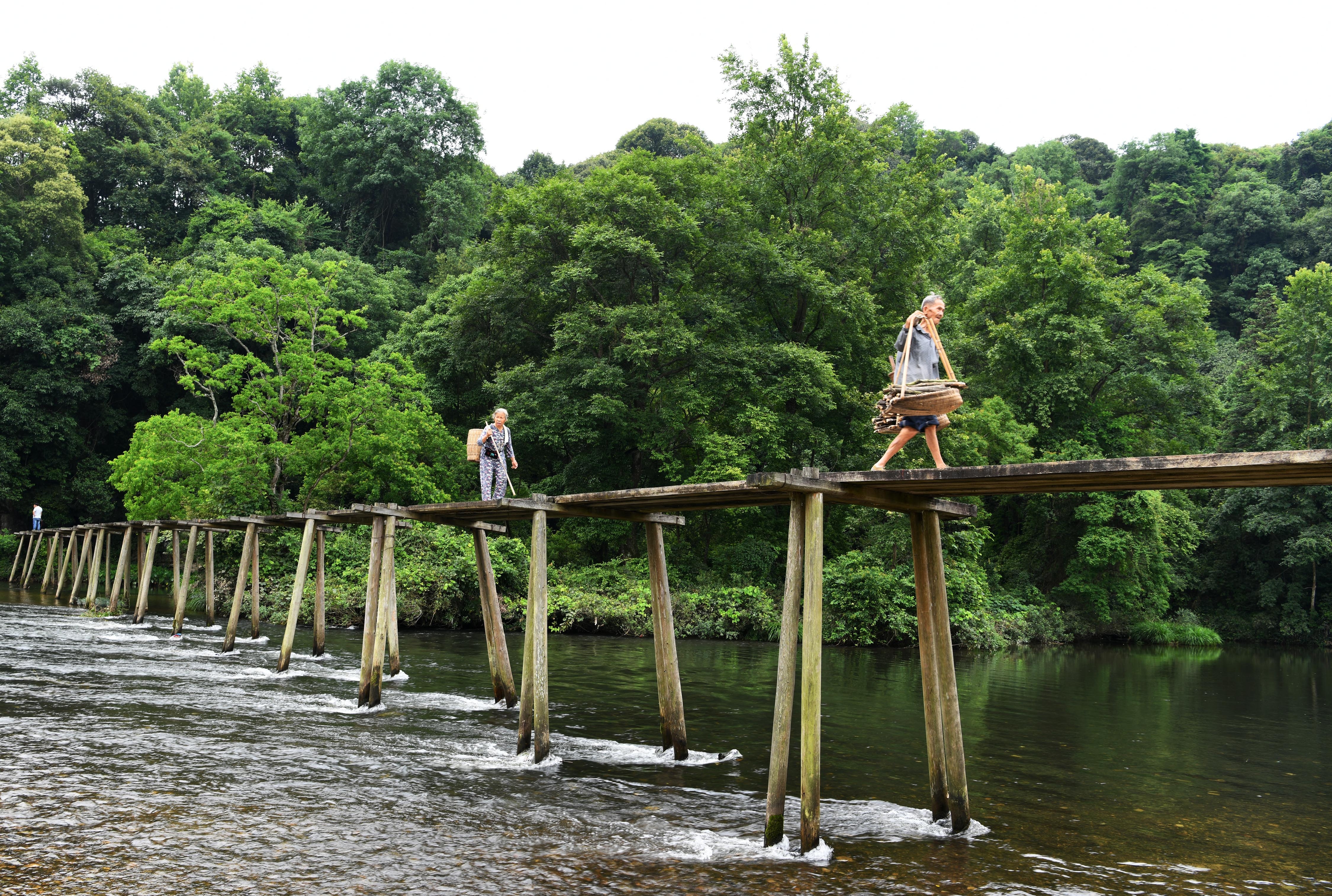 "They brought out all the available timber at home, and many of the villagers even volunteered to provide their bed and door boards," said 68-year-old Wu Xiyan. Wu's uncle was among the villagers who worked with the soldiers in building the "Red Army Bridge," a name then given to commemorate the close relations between the Red Army and the people.