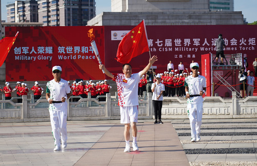 A total of 2,019 torch bearers will carry the torch in 27 cities and 16 military spots across the country from Aug. 1 to Oct. 18. The 7th Military World Games will be held in Wuhan, capital of central China's Hubei Province, between Oct. 18 and 27.