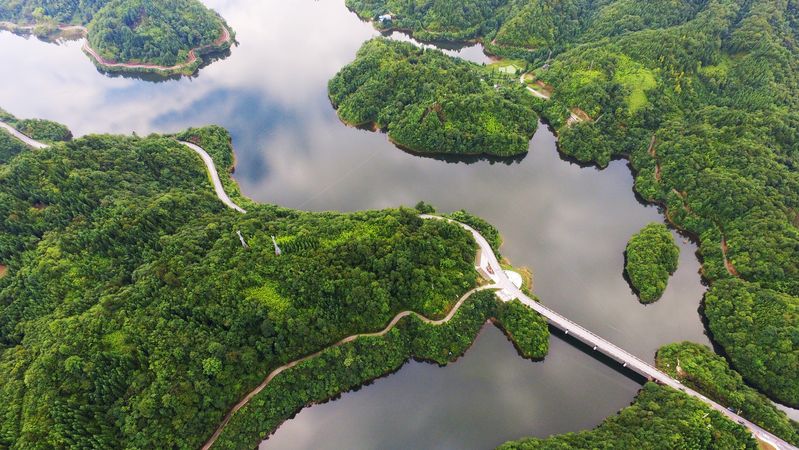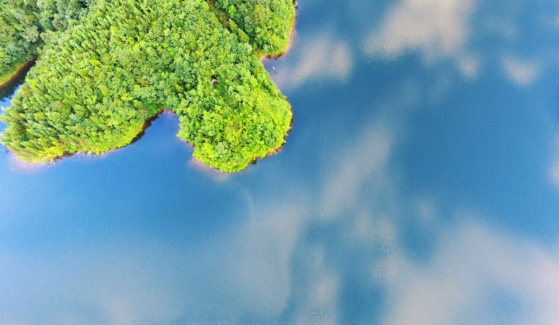 CHONGQING, Aug. 8, 2019 (Xinhua) -- Shades of deep green and blue create a placid picture of the Taiyang Lake in Shizhu Tujia Autonomous County, southwest China's Chongqing Municipality.