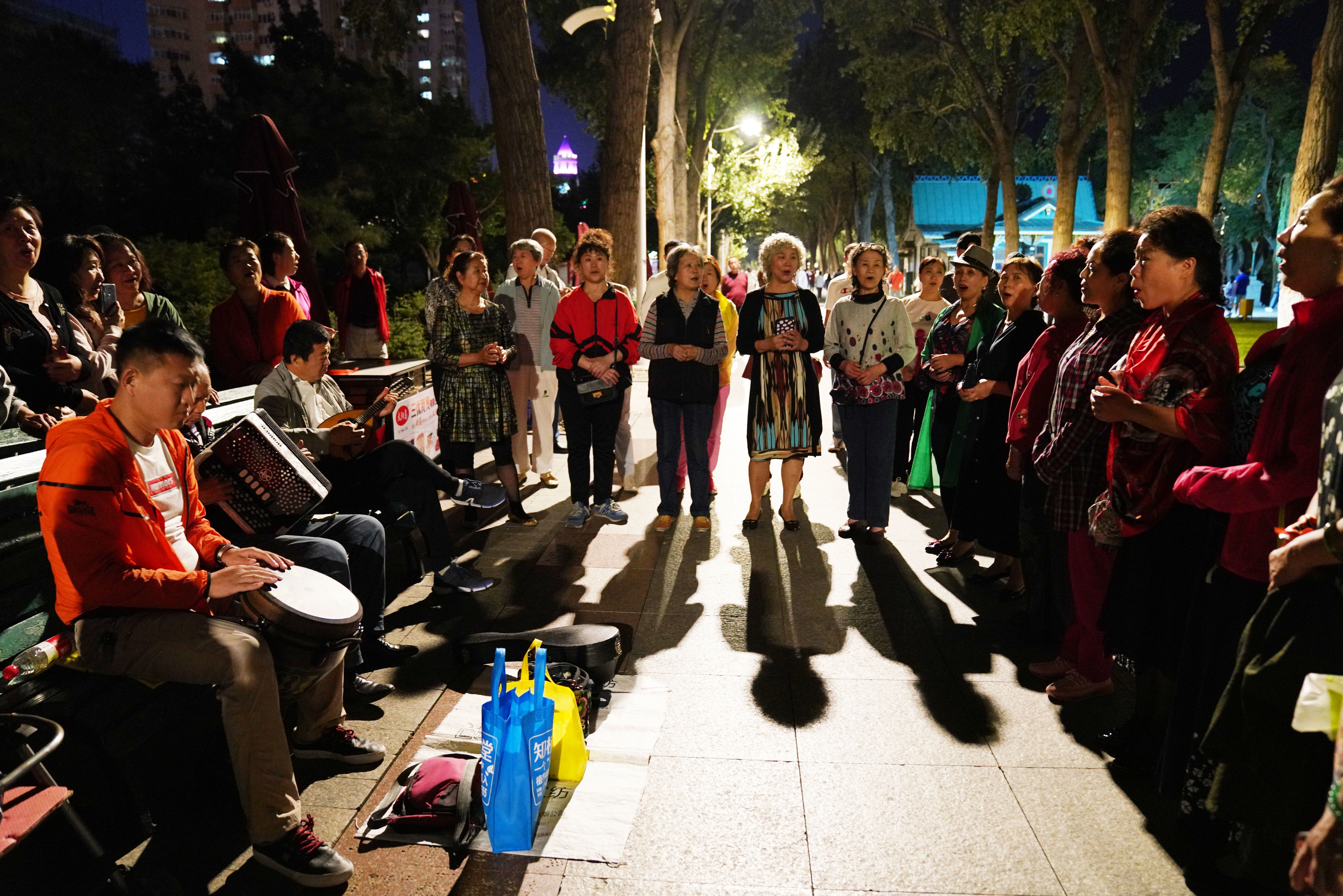 Citizens sing in a park in Harbin, capital of northeast China's Heilongjiang Province, Aug. 24, 2019. (Xinhua/Wang Jianwei)