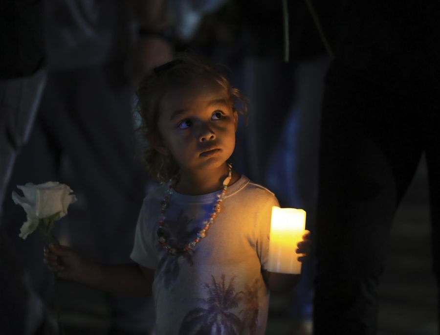 A girl takes part in a prayer and vigil for the boat fire victims at Santa Monica Beach in Santa Monica, California, the United States, Sept. 5, 2019. (Xinhua/Li Ying)