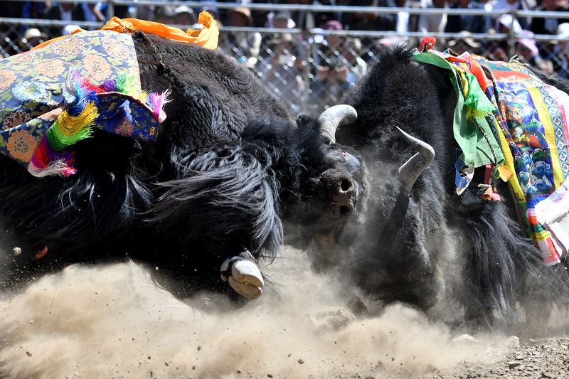 Yaks fight during a bullfighting festival in Zhexia Township, southwest China's Tibet Autonomous Region. (Xinhua/Chogo)