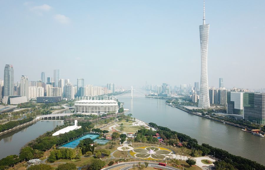 Photo shows a view of Zhujiang New Town in Guangzhou, south China's Guangdong Province. (Xinhua)