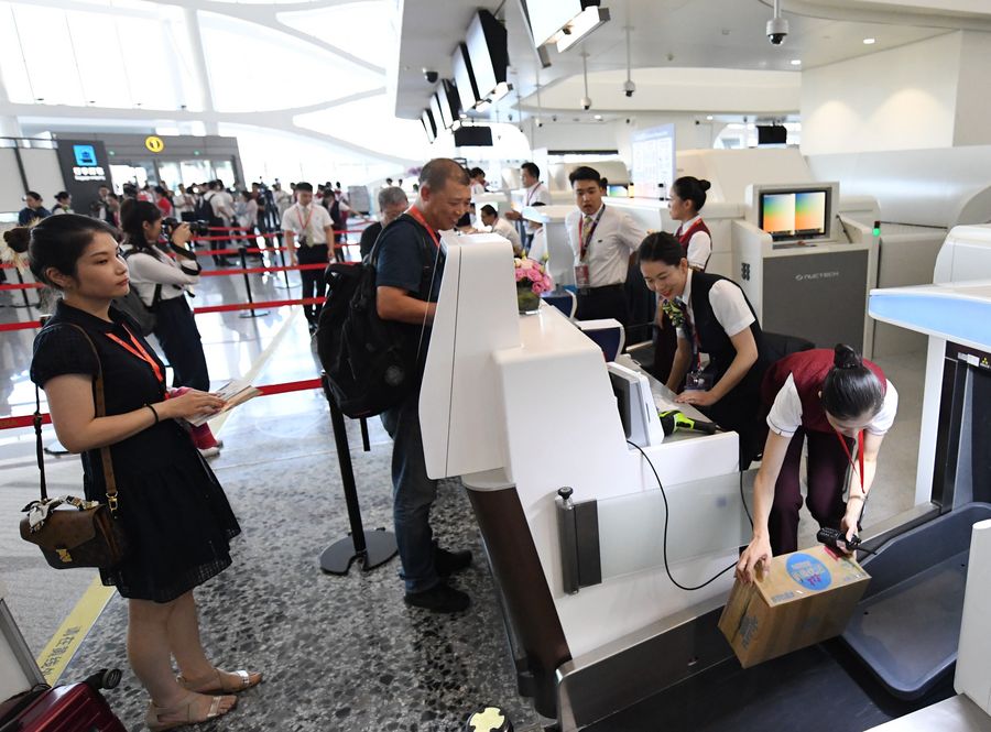 Zeng Qingwei, a passenger taking China Eastern Airlines' first flight at the new airport, said it took him one minute to complete the check-in process with baggage.