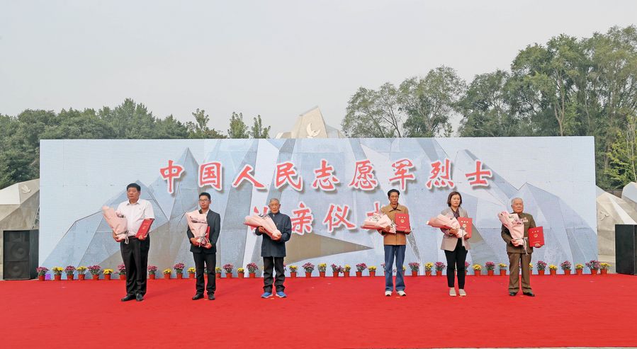 Relatives of the fallen heroes were invited to a ceremony held Sunday afternoon by the Ministry of Veterans Affairs at the Shenyang cemetery, with more than 200 people, including Korean War veterans attending. They received kinship certificates on the ceremony.
