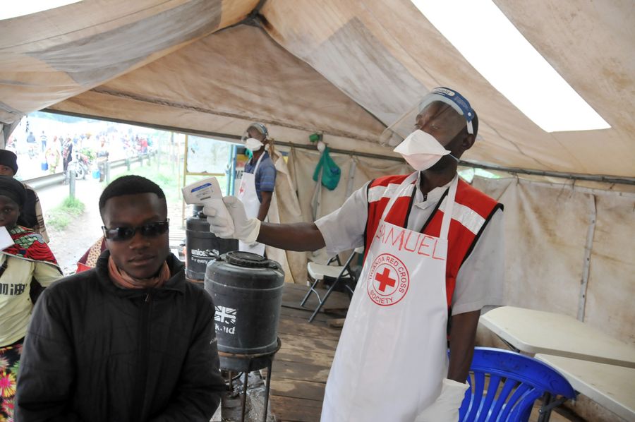A Congolese man is screened for Ebola Virus Disease (EVD) at the Mpondwe border, Kasese District, Western Uganda on June 18, 2019. (Xinhua/Nicholas Kajoba)