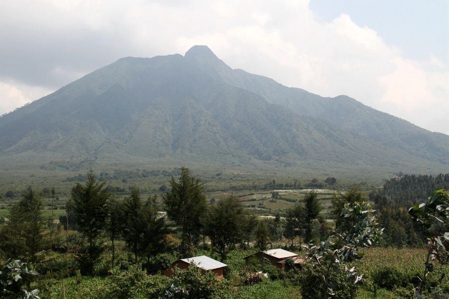 The photo taken on Dec. 25, 2017 shows a view of Virunga Mountains in Musanze District, northwestern Rwanda. Virunga Mountains, which has eight ancient volcanoes, are home to endangered mountain gorillas. (Xinhua/Lyu Tianran)
