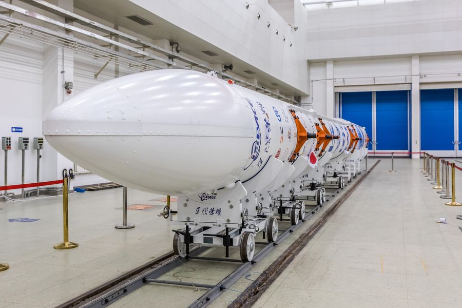Photo taken on July 23, 2019 shows the carrier rocket SQX-1 Y1 in the Jiuquan Satellite Launch Center in northwest China. (i-Space/Handout via Xinhua)