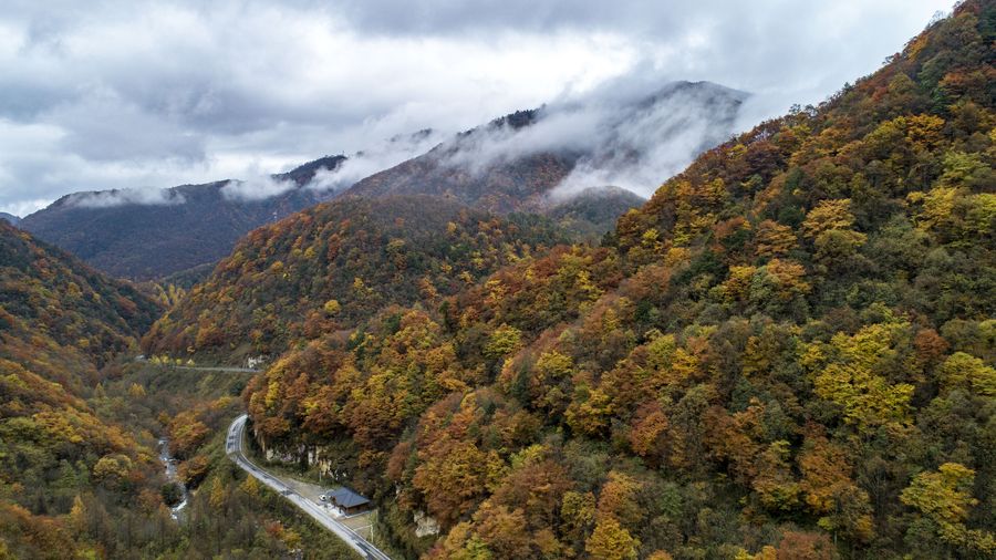 Photo taken on Oct. 27, 2019 shows the autumn scenery of Shennongjia National Park, central China's Hubei Province. (Xinhua/Du Huaju)