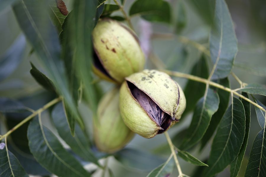 Pecans are pictured in an orchard near Cordele, Georgia, the United States, Oct. 26, 2019. (Xinhua/Li Muzi)
