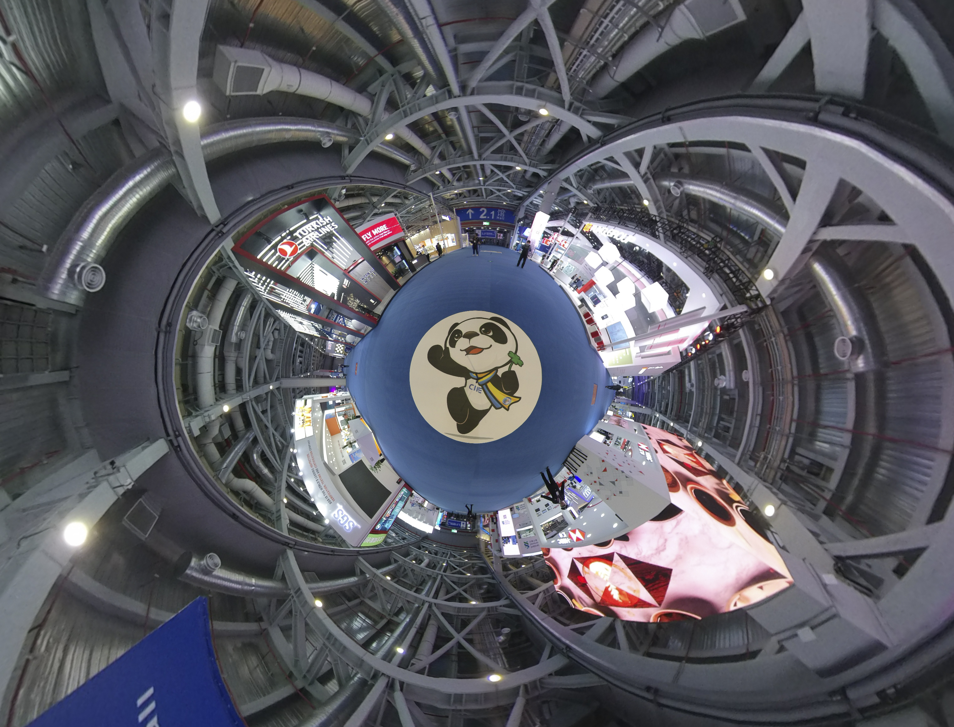 Panorama photo taken on Nov. 5, 2019 shows the Trade in Services exhibition area during the second China International Import Expo (CIIE) in Shanghai, east China. (Xinhua/Yin Ke)
