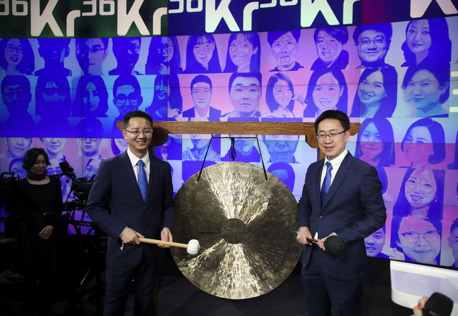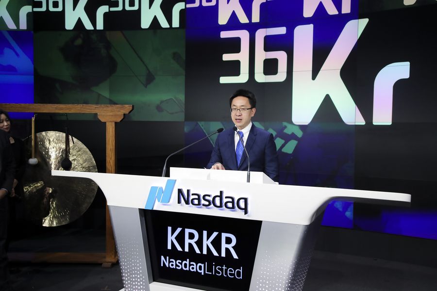 NEW YORK, Nov. 9 (Xinhua) -- 36Kr Holdings Inc., an online media publisher or China's equivalent to TechCrunch in the United States, made public debut on the Nasdaq Global Market on Friday under the ticker symbol KRKR.