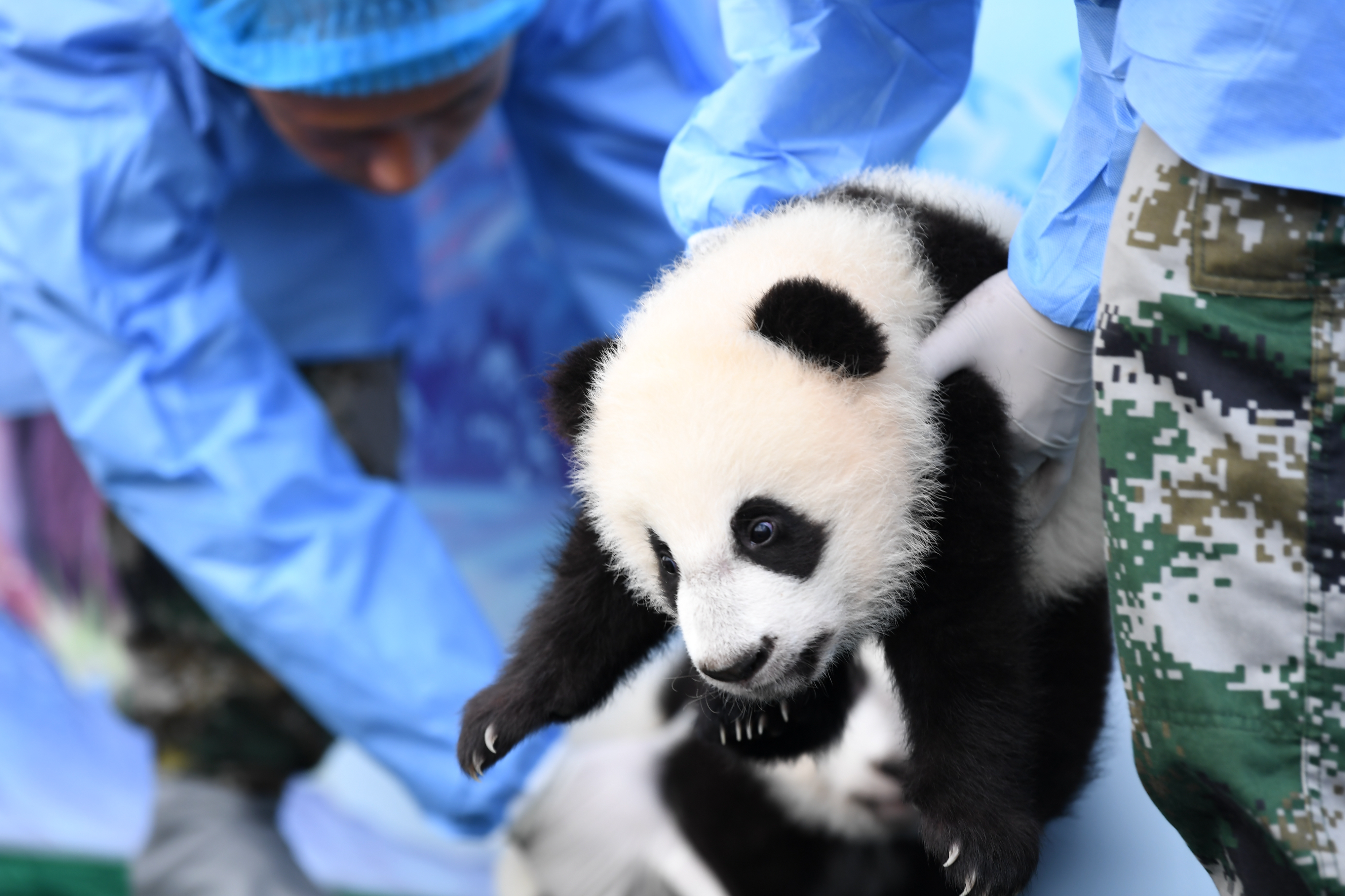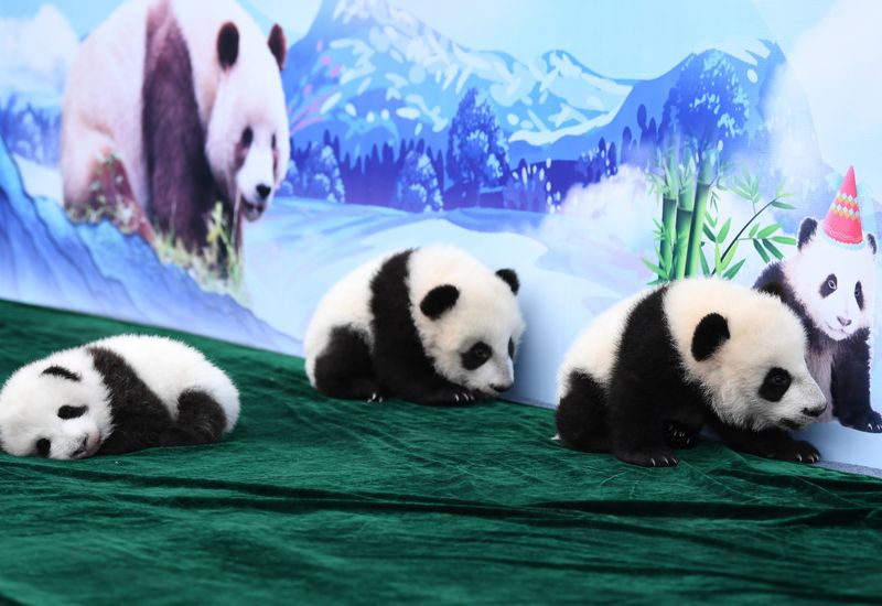 The names of the three cubs were announced at a 100-day-old celebration: giant panda Lousheng's cub was named "Qinku'er," and the pair of cubs born to giant panda Zhuzhu were named "Jiajia" and "Yuanyuan."