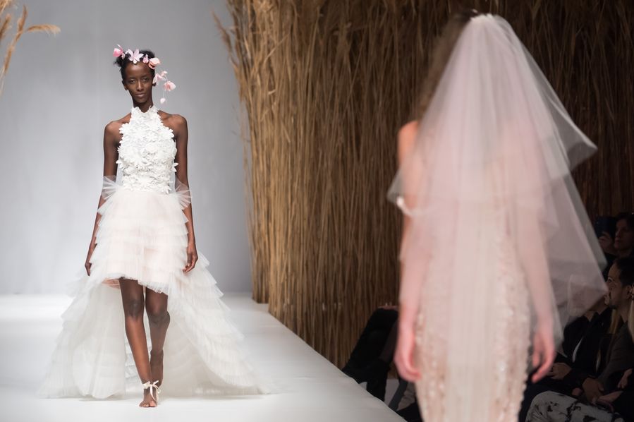 Models present creations of Hungarian fashion designer Viktoria Varga during a fashion show at the Marie Claire Fashion Days in Budapest, Hungary. (Photo by Attila Volgyi/Xinhua)