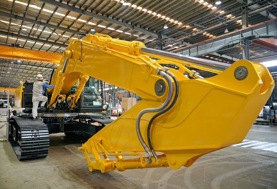 A staff member works at an engineering machinery company in Kaiping District of Tangshan, north China's Hebei Province, Nov. 17, 2019. (Xinhua/Yang Shiyao)