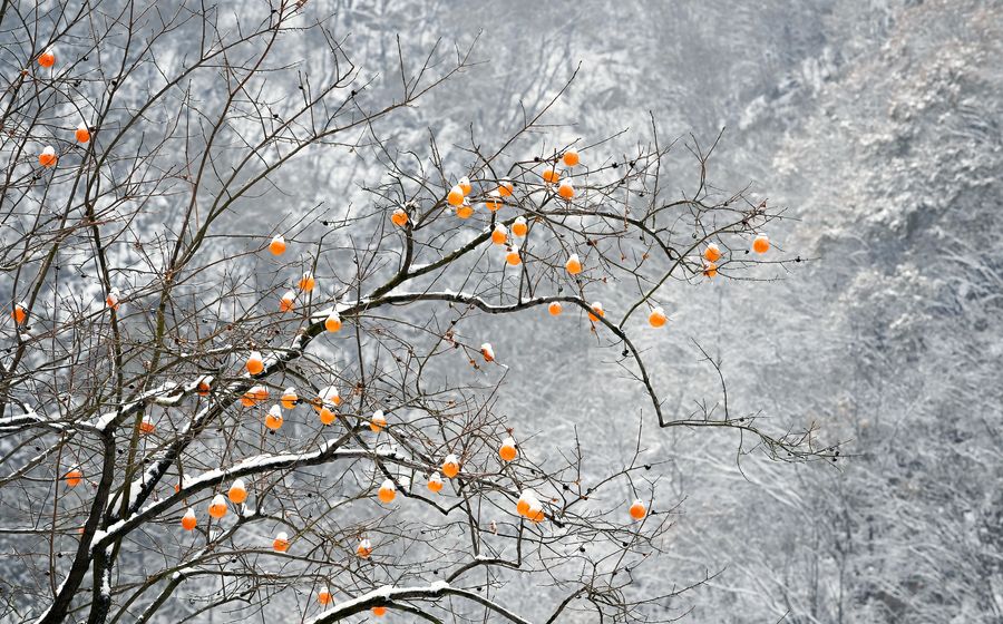 Aerial photo taken on Nov. 25, 2019 shows part of the snow-covered Qinling Mountains in Xi'an, northwest China's Shaanxi Province. (Xinhua/Liu Xiao)