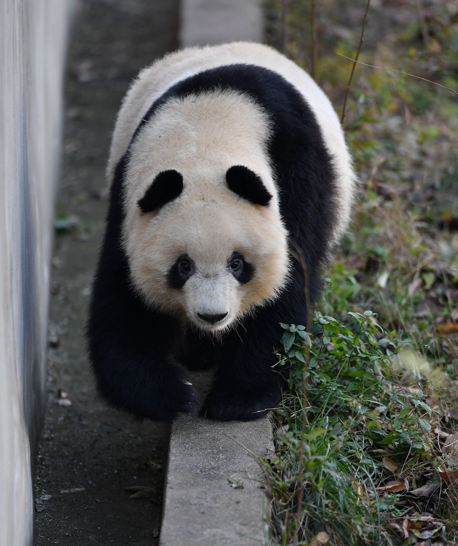 Giant panda Qiao Qiao is seen at Qinling Research Base of Giant Panda Breeding of Shaanxi Academy of Forestry in Xi'an, Dec. 3, 2019. (Xinhua/Zhang Bowen)