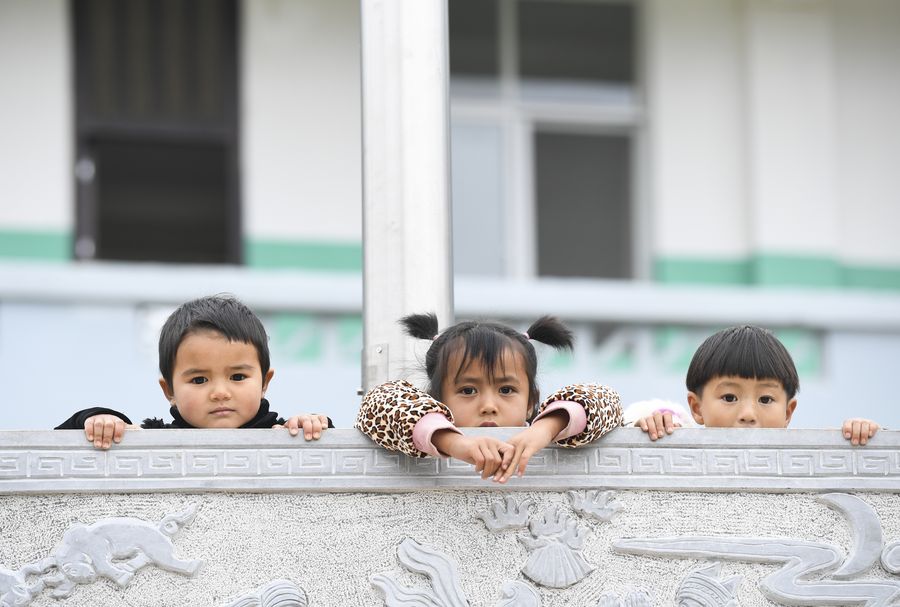 Kids take a break at school in Danuohei Village of Guishan Township in Shilin Yi Autonomous County, southwest China's Yunnan Province, Nov. 28, 2019. (Xinhua/Wang Quanchao)