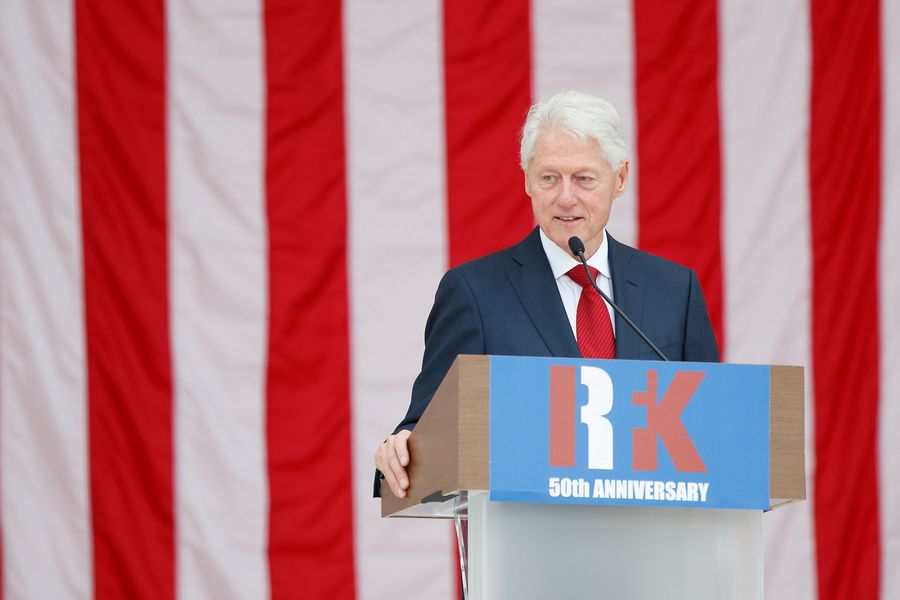 Former U.S. President Bill Clinton speaks during a public memorial for Robert F. Kennedy at the 50th anniversary of his assassination at Arlington National Cemetery in Arlington, Virginia, the United States, on June 6, 2018. (Xinhua/Ting Shen)