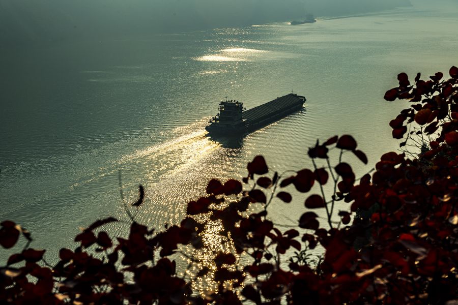 A ship sails through the Wuxia Gorge, one of the Three Gorges on the Yangtze River, in Wushan County, southwest China's Chongqing Municipality, Nov. 23, 2019. (Xinhua/Wang Quanchao)