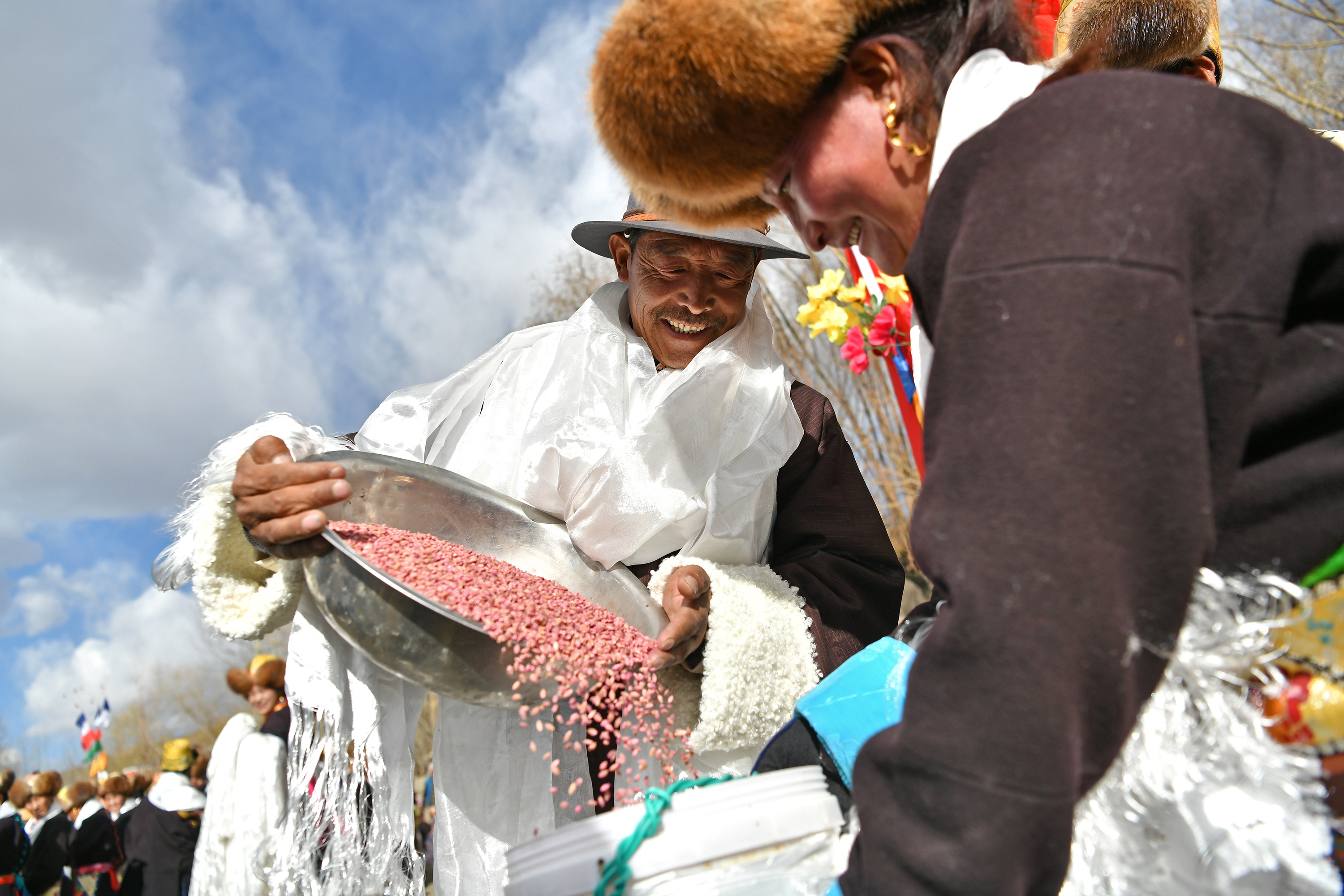 Residents attend a spring plowing ceremony in Shannan, southwest China's Tibet Autonomous Region, March 16, 2019. (Xinhua/Li Xin)