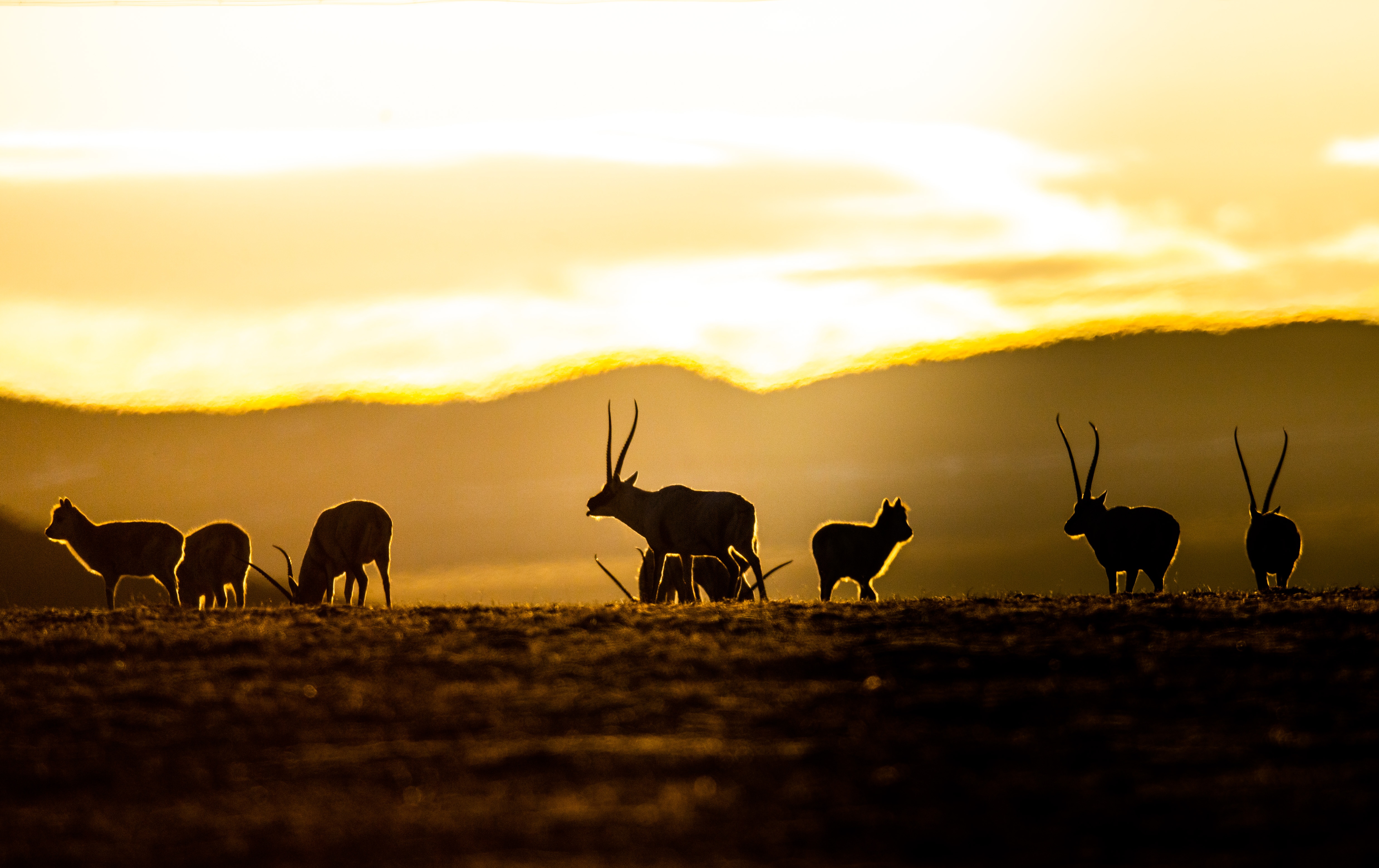 Photo taken on Jan. 31, 2019 shows Tibetan antelopes in Shuanghu County, southwest China's Tibet Autonomous Region. (Xinhua/Purbu Zhaxi)