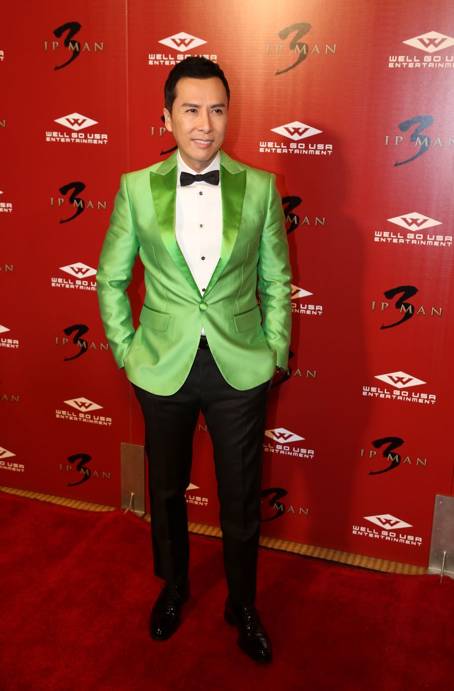 Actor Donnie Yen poses for photos on the red carpet at the premiere of "Ip Man 3" in West Hollywood, Los Angeles of California, the United States, Jan. 20, 2016. (Xinhua/Xu Yuanda)