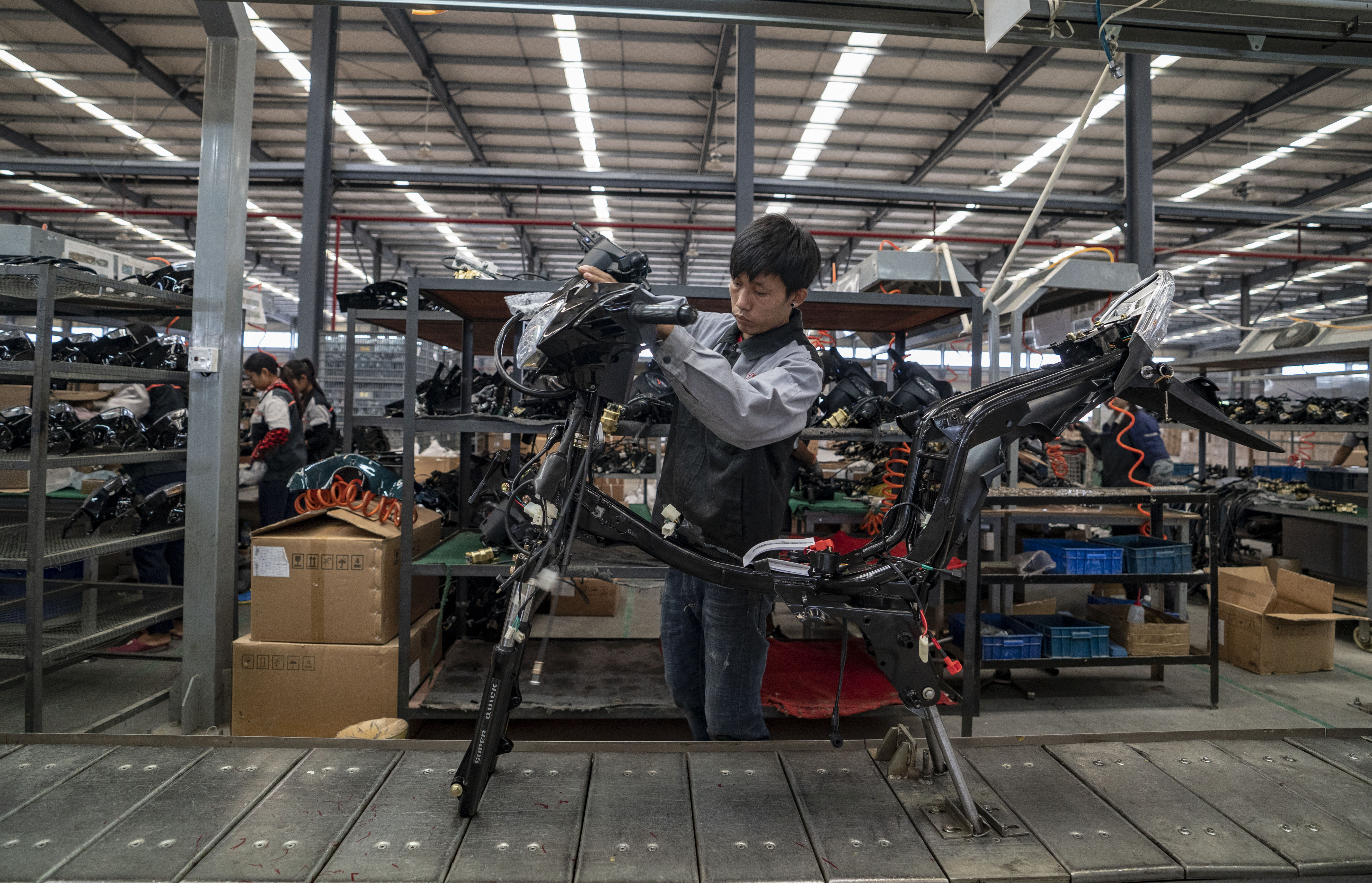An employee from Myanmar works at a motorbike factory in China (Yunnan) Pilot Free Trade Zone (FTZ) Dehong Area in Dehong, southwest China's Yunnan Province, Nov. 4, 2019. (Xinhua/Jiang Wenyao)