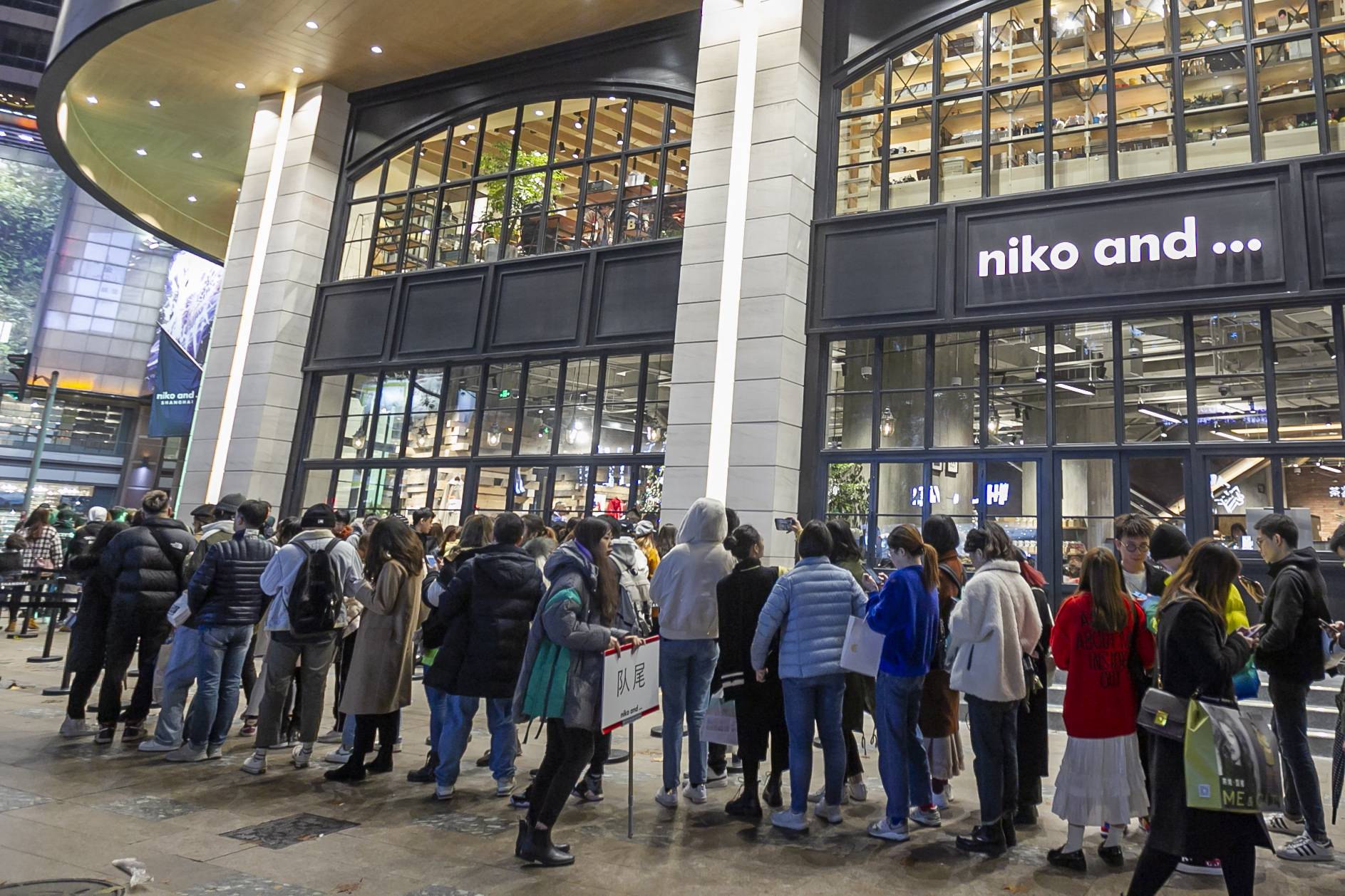 Consumers wait in line outside the global flagship store of "niko and..." brand in Shanghai, east China, Dec. 21, 2019. (Xinhua/Wang Xiang)