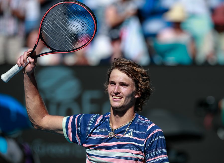 Alexander Zverev of Germany celebrates after winning the quarterfinal of men's singles match between Alexander Zverev of Germany and Stan Wawrinka of Switzerland at 2020 Australian Open in Melbourne, Australia, Jan. 29, 2020. (Xinhua/Wang Jingqiang)