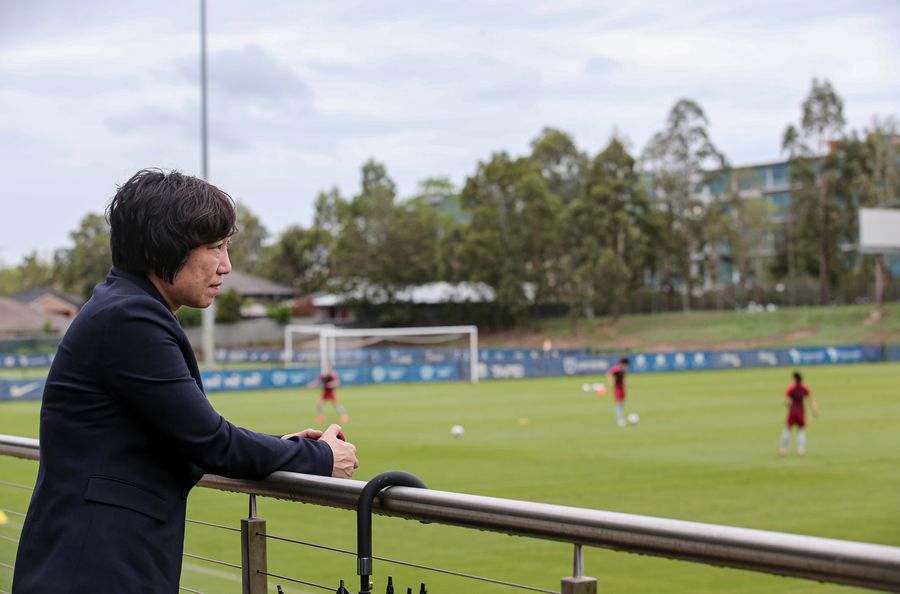 Sun Wen, vice president of the Chinese Football Association (CFA), inspects a training session for the upcoming Olympic women's football qualifying Group B matches in Sydney, Australia, Feb. 6, 2020. (Xinhua/Bai Xuefei)